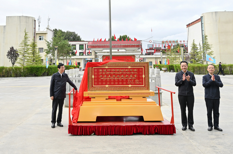 8月23日上午,受习嘱托,带着党中央的亲切关怀和全国人民的深情祝福,中央代表团部分成员在日喀则看望慰问各族干部群众。这是和中央代表团部分成员向日喀则市赠送贺匾。新华社记者 殷博古 摄