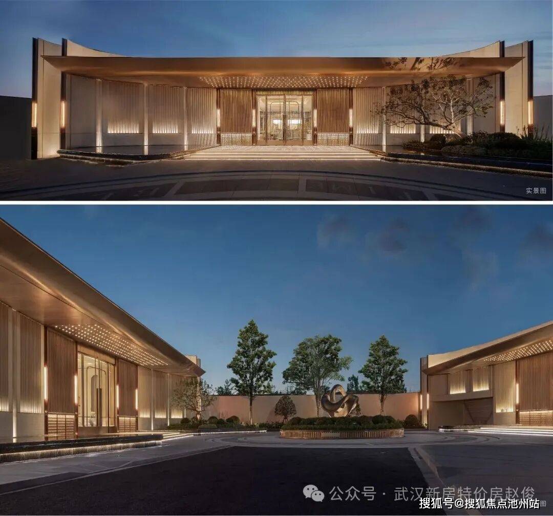 ✅【精工立新】天工石玺双面豪门 迎候归家之仪以奢华酒店为灵感,主入口打造双面豪门,东侧约39米、西侧约43米的超宽尺度,高度约8米;定制华之柱、华之纹建筑符号,塑造极具空间张力的礼仪门庭