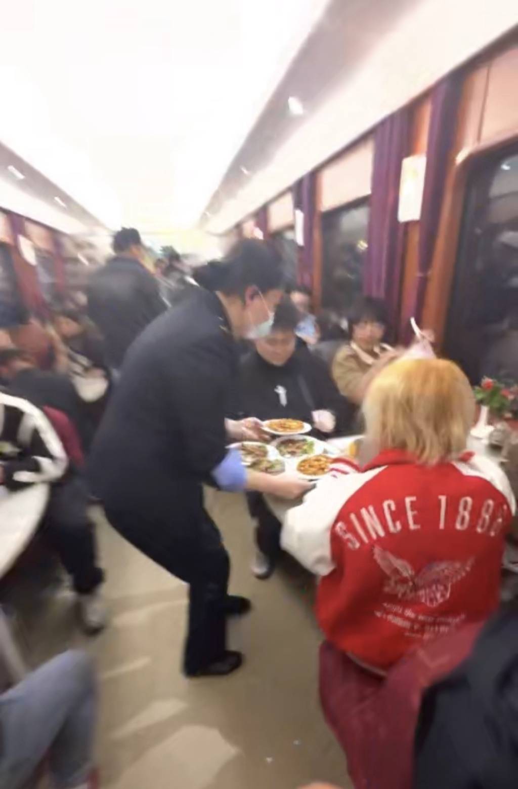 1月10日,记者在Z99次列车看到,10张餐桌上,每张都摆了起码一道招牌的鲈鱼,人们竞相拍照打卡,交口称赞,往后看,拿着号码牌等排队入座的食客塞满了车厢。有铁路迷感慨,起先听闻这里是“沪港移动酒楼”,到现场一看,热闹得像是“移动大排档”。
