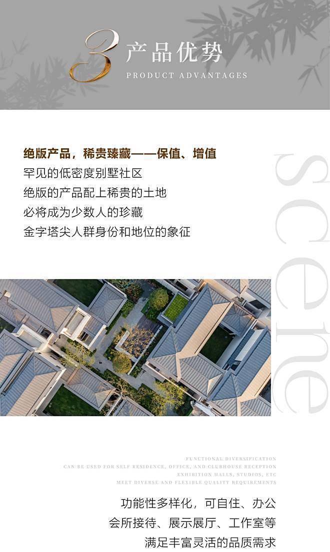 目前在售的为市场罕见的471~611㎡低密度合院别墅,地上2层地下2层,通燃气,带一楼私家花园庭院,不限购,不占用居住购房名额,可自住,可办公,可做会所接待,可做展厅,可开工作室,功能多样化,满足各类高净值人士的不同需求。